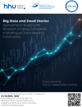 Theorien, Konzepte und Praktiken der sprachlichen und kulturellen Übersetzung spielen auch im Masterstudiengang "Literaturübersetzen" eine wichtige Rolle. Wir verstehen Übersetzung als eine Praxis der (instabilen) Verknüpfung, die Austausch zwischen verschiedenen Sprachen, Gemeinschaften und Literaturen ermöglicht und dabei zugleich für Alterität sensibilisiert. Das Centre for Translation Studies (CTS) bietet ein interdisziplinäres Forum für die Erforschung von sprachlicher und kultureller Übersetzung.
